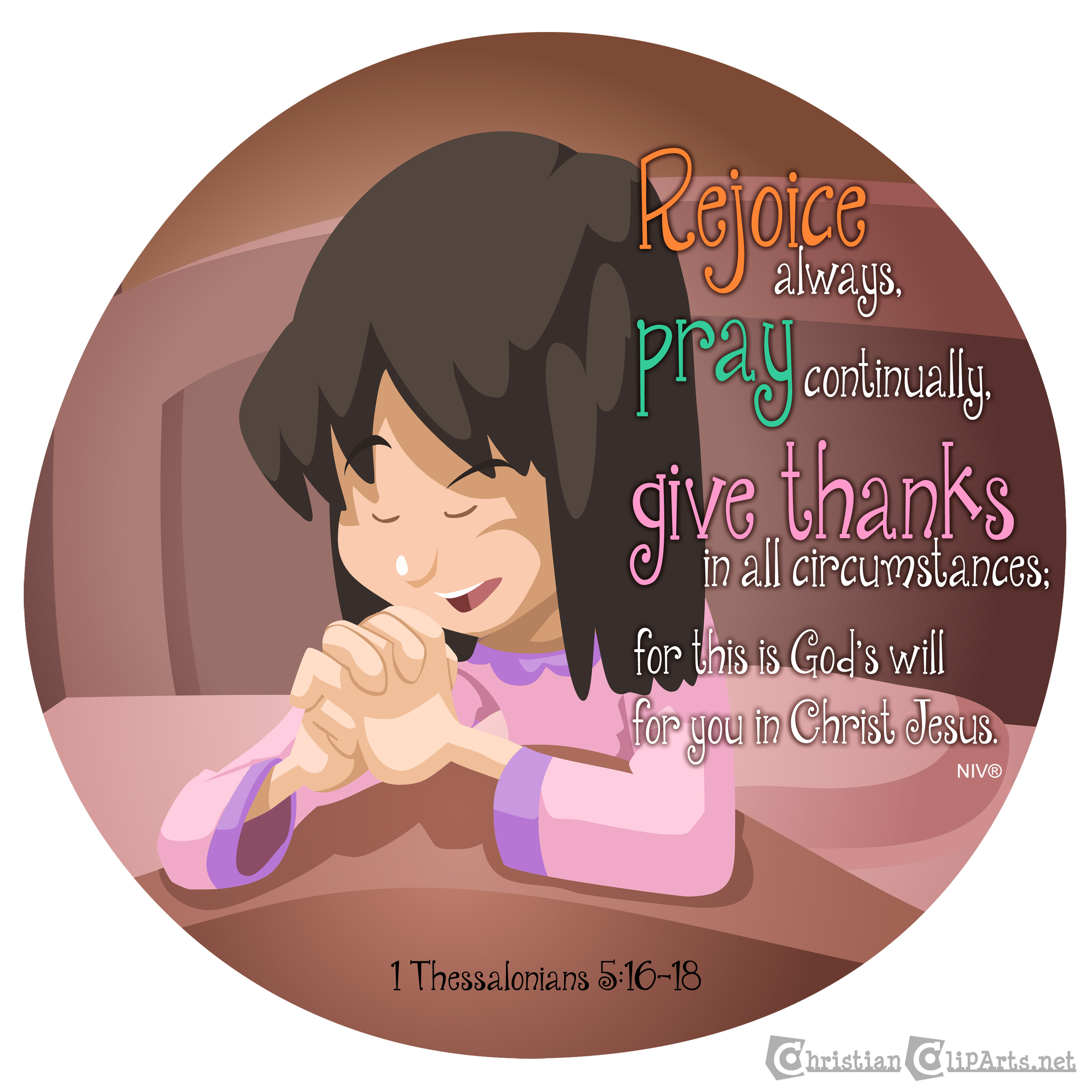 Rejoice always, pray continually, give thanks in all circumstances; for this is God’s will for you in Christ Jesus. |