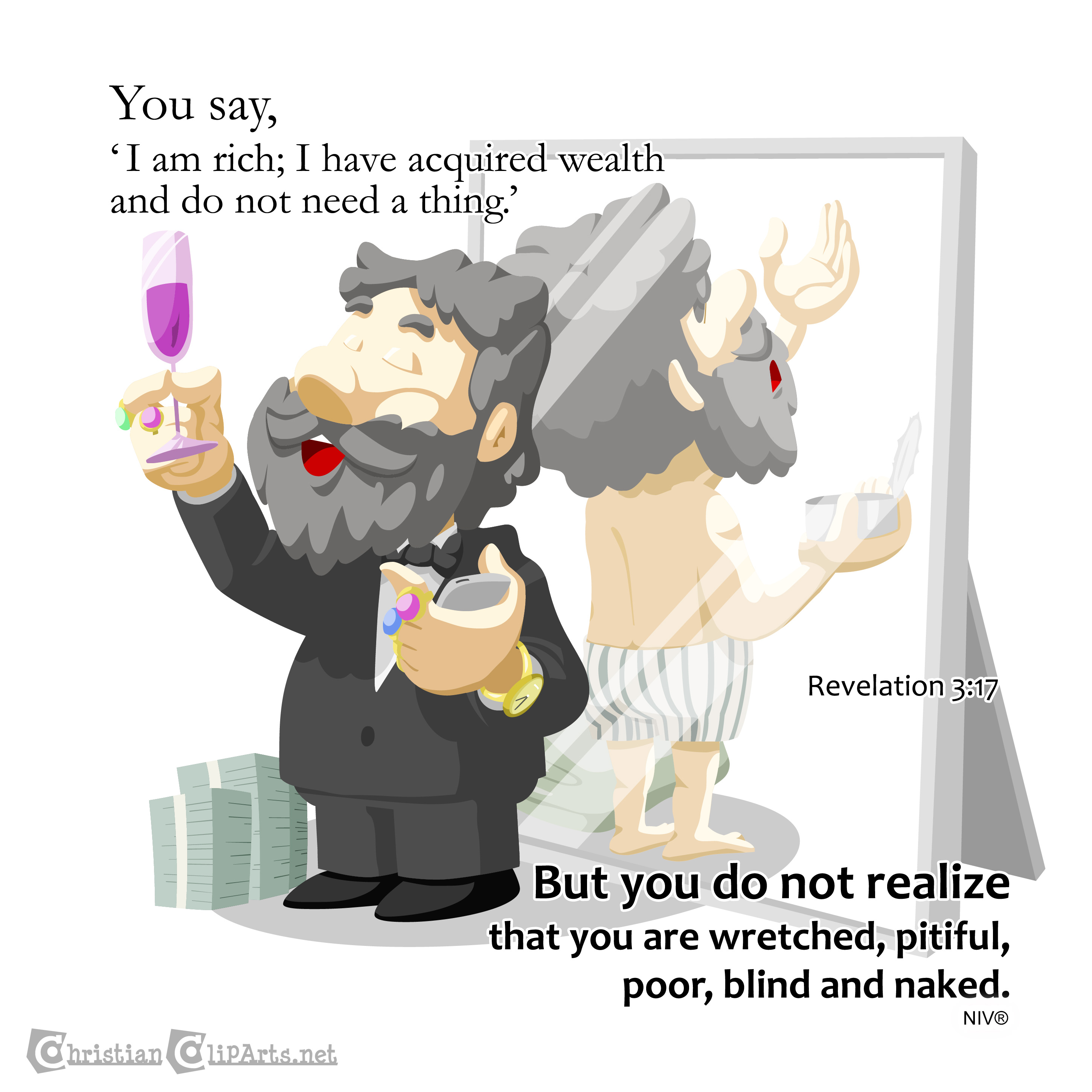 You say, ‘I am rich; I have acquired wealth and do not need a thing.’ But you do not realize that you are wretched, pitiful, poor, blind and naked. |