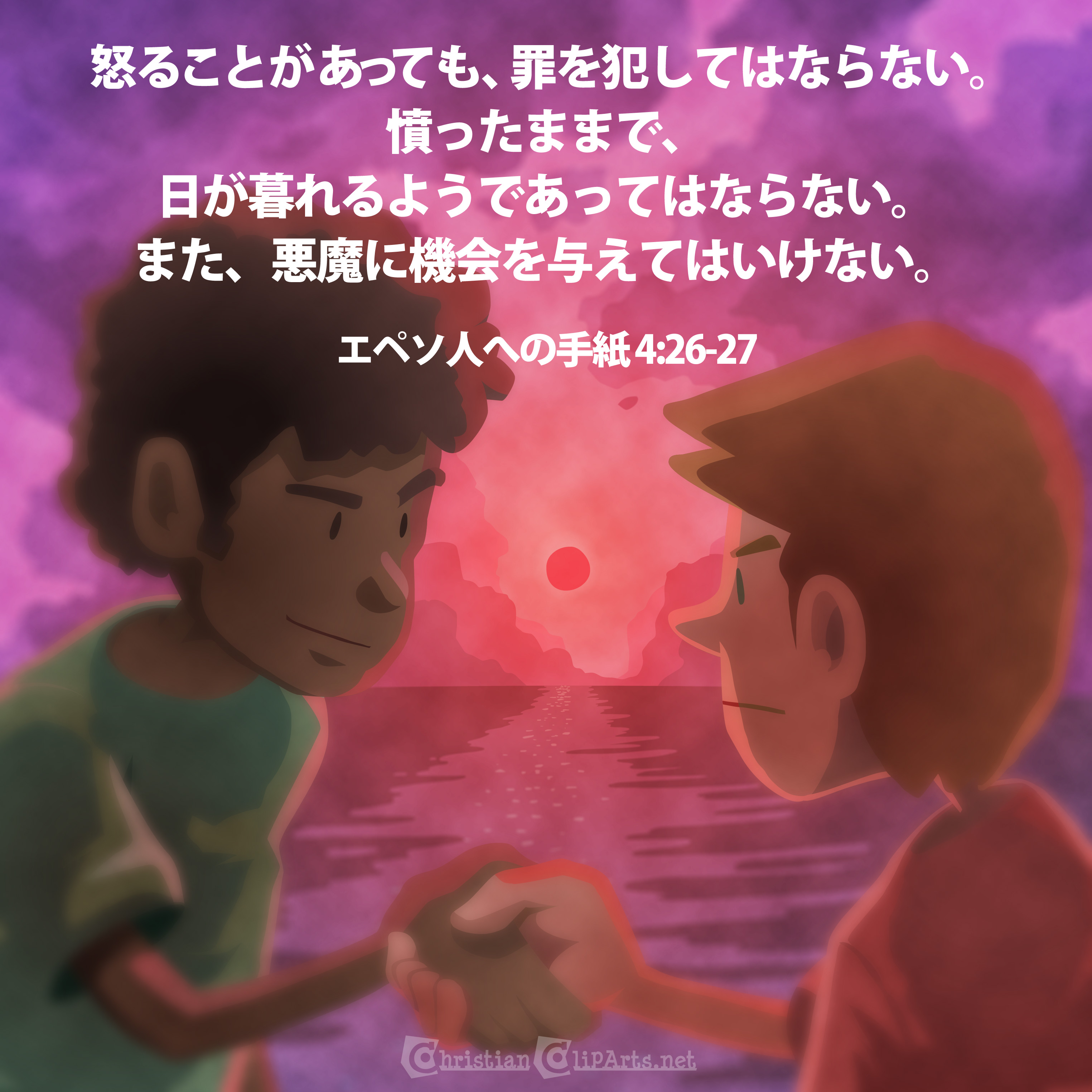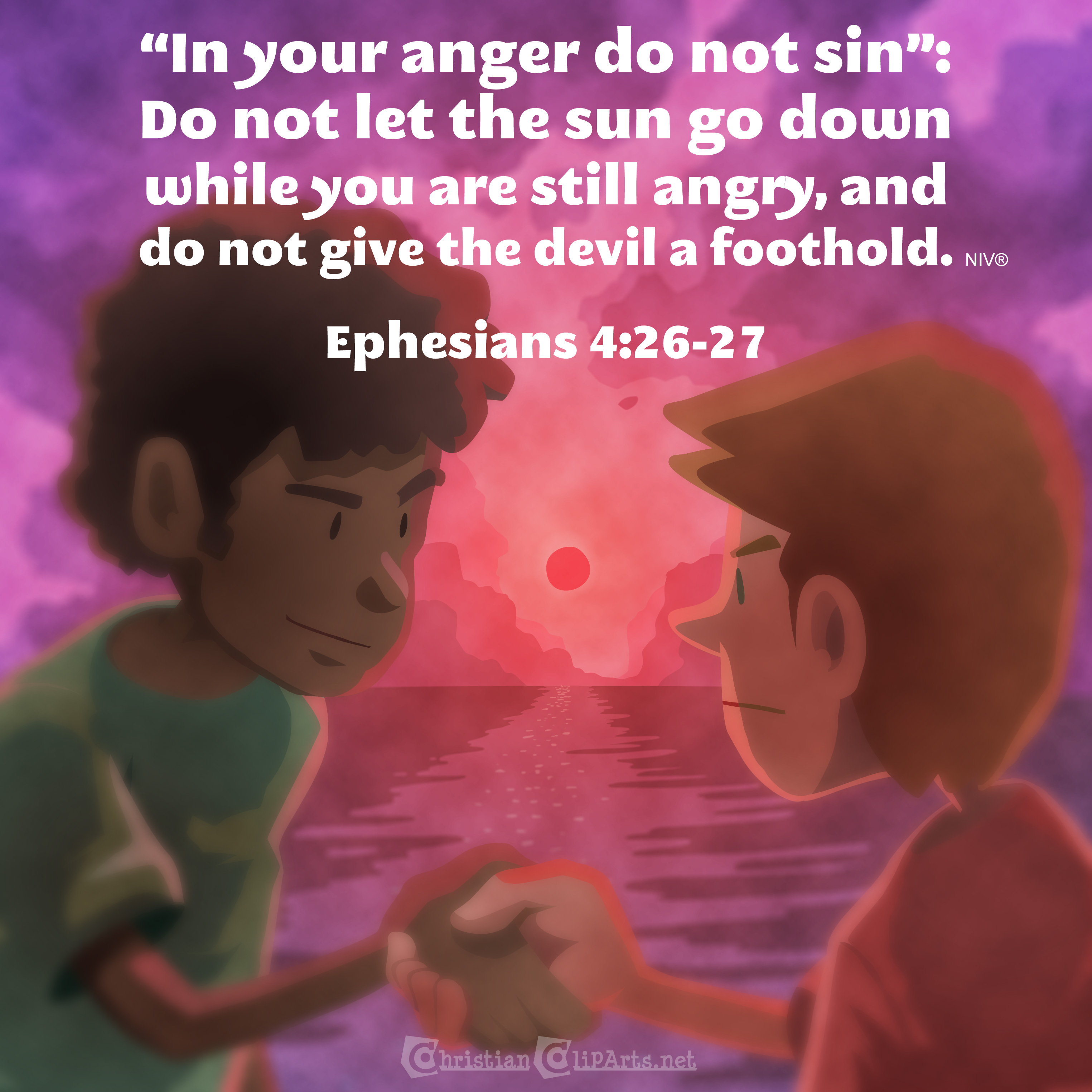 “In your anger do not sin”: Do not let the sun go down while you are still angry, and do not give the devil a foothold. |