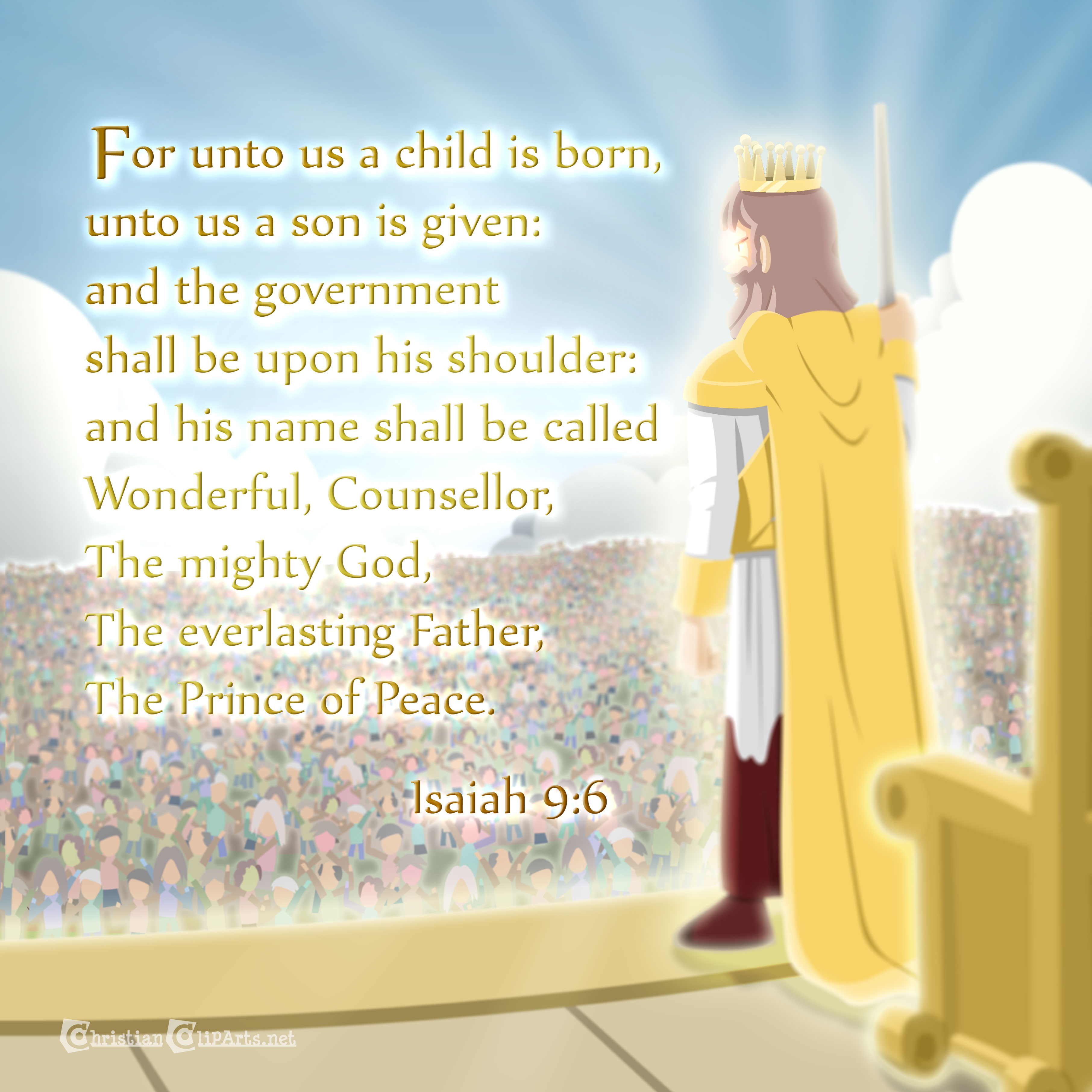 For unto us a child is born, unto us a son is given: and the government shall be upon his shoulder: and his name shall be called Wonderful, Counsellor, The mighty God, The everlasting Father, The Prince of Peace. |